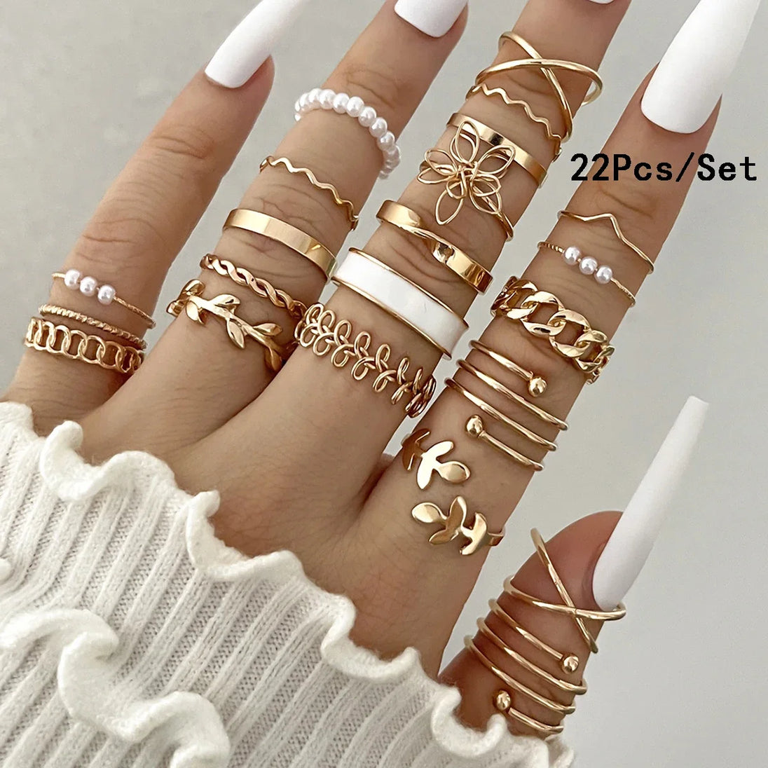 23PCS Bling Stackable Rings Set for Women – Trendy Gold & Silver Tone Fashion Jewelry✨