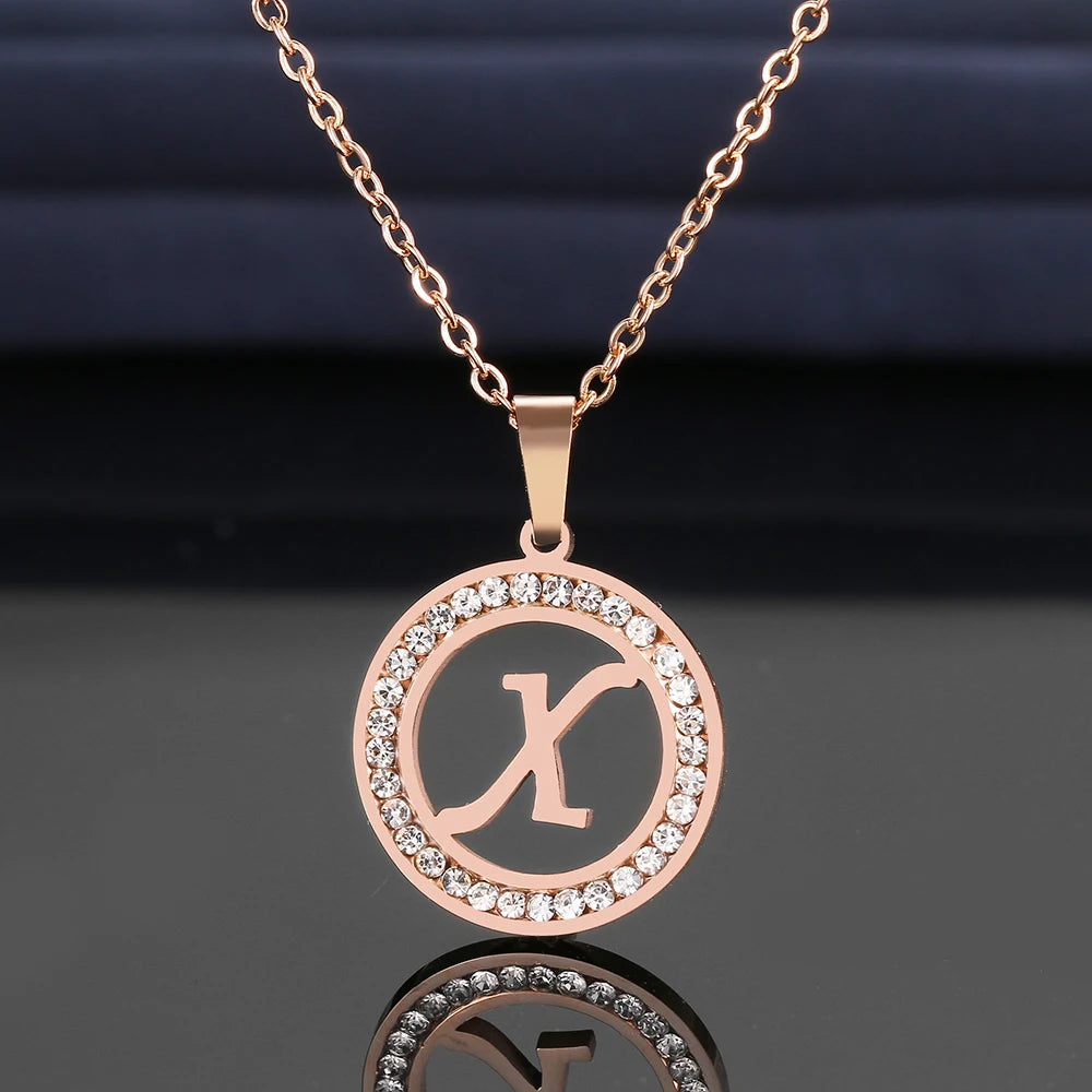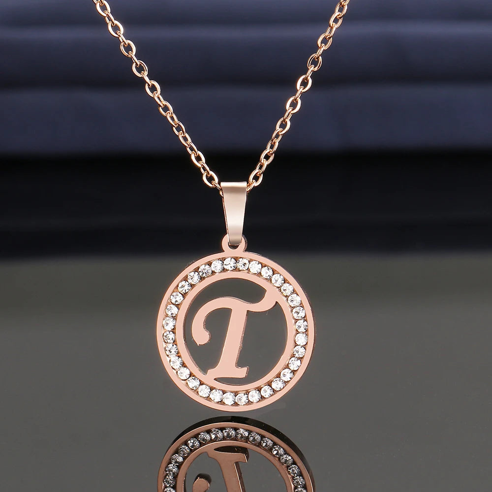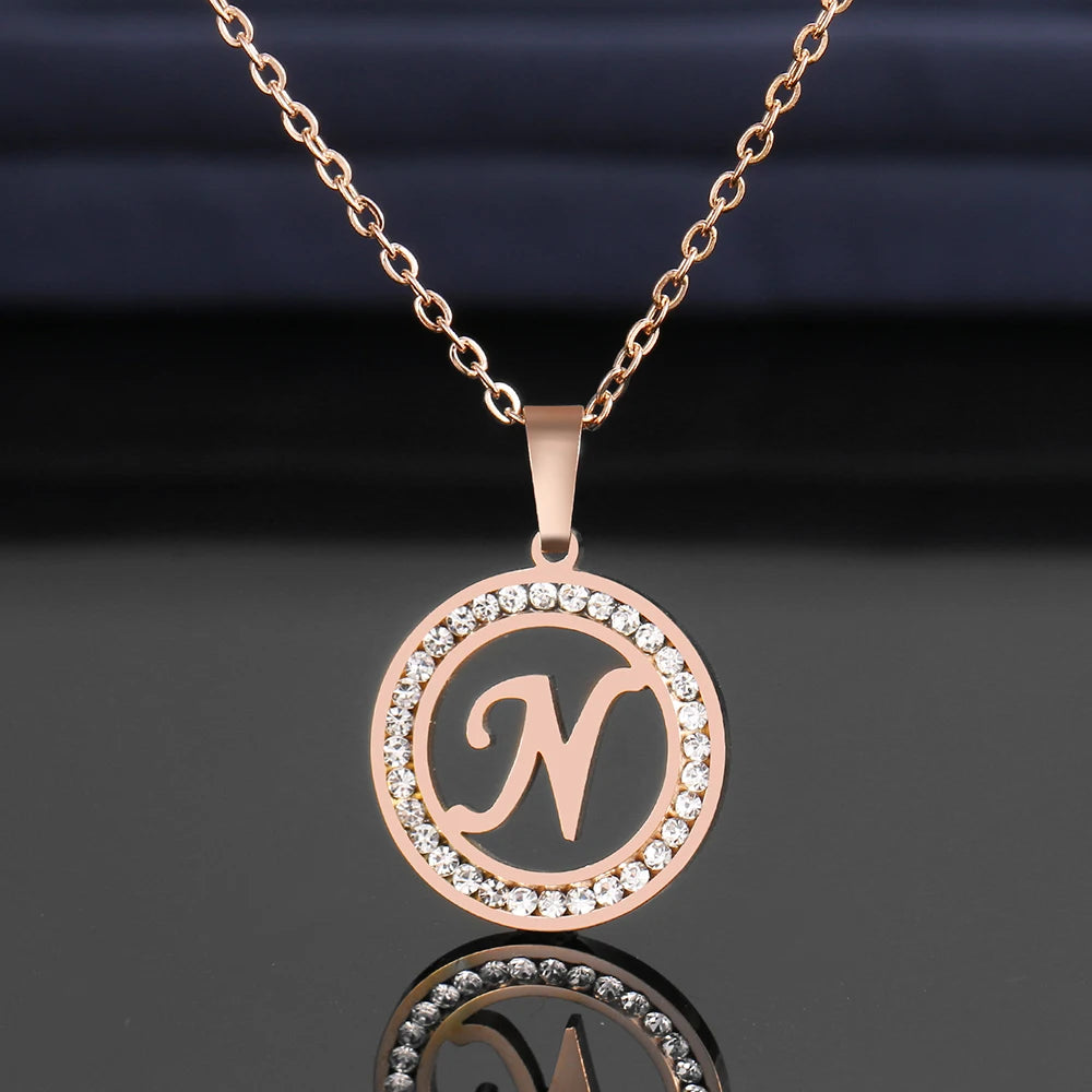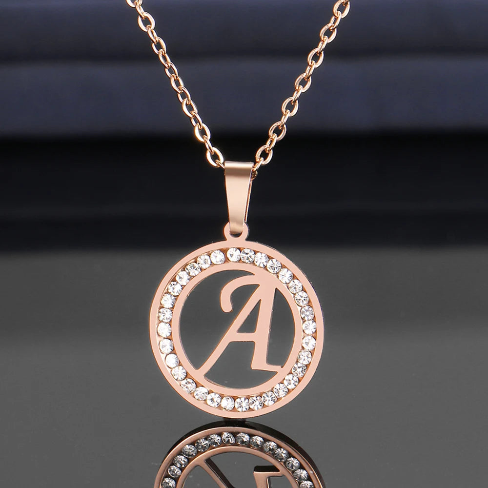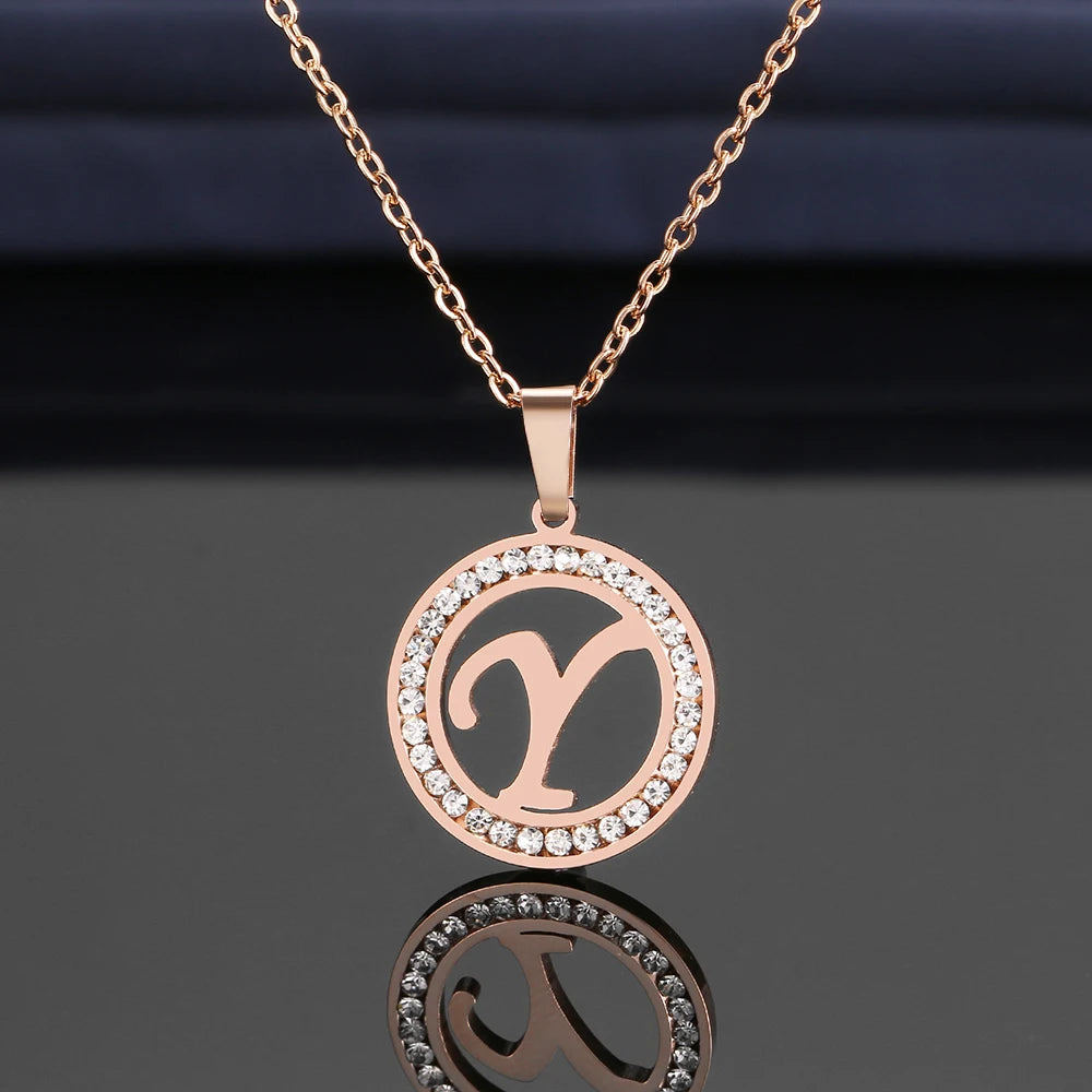 Perfect for gifting or treating yourself, our Rhinestone Circled Initials Necklace is a chic and versatile addition to any jewelry collection. With 26 alphabet options available, there's a necklace to suit every style and personality.