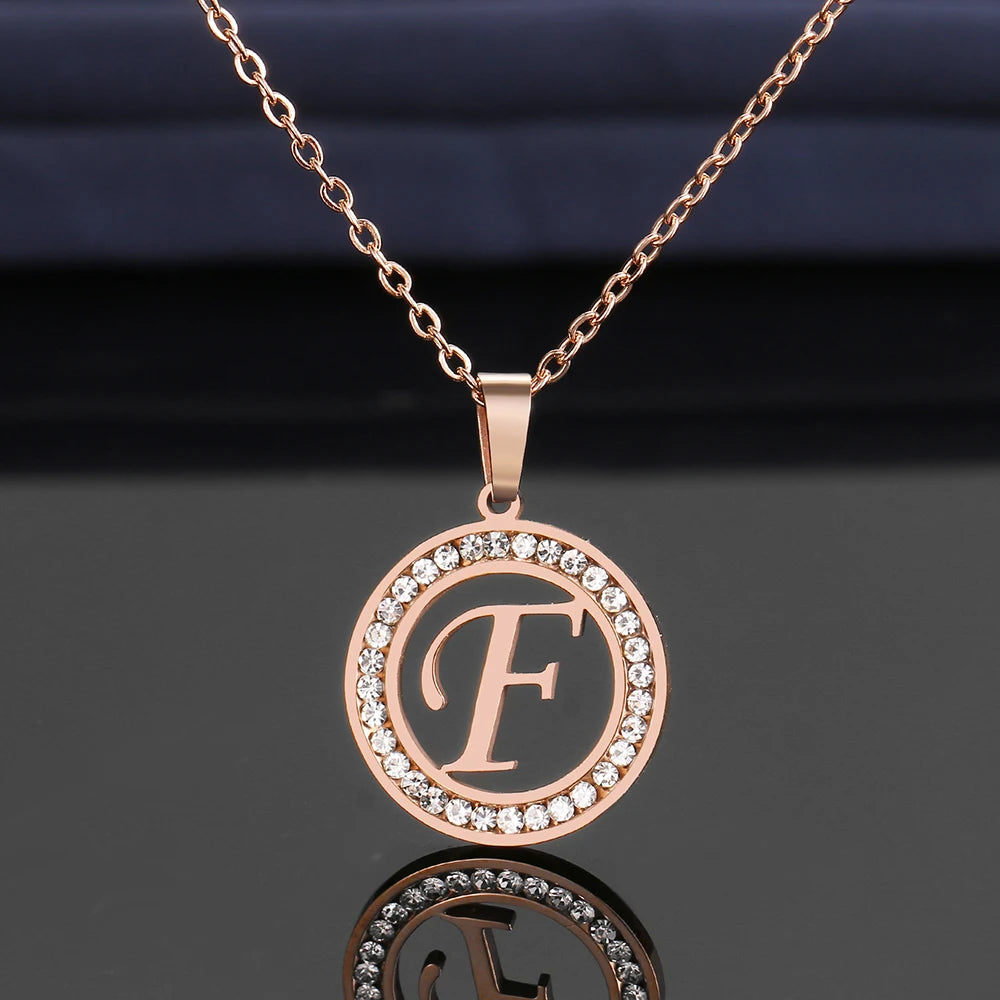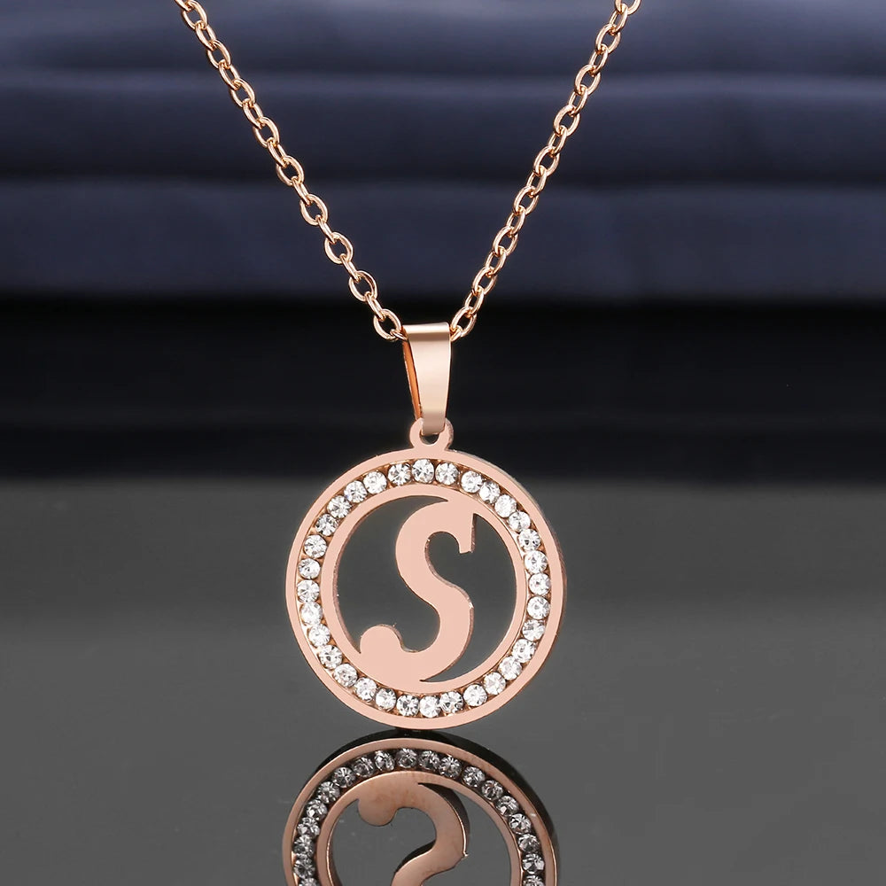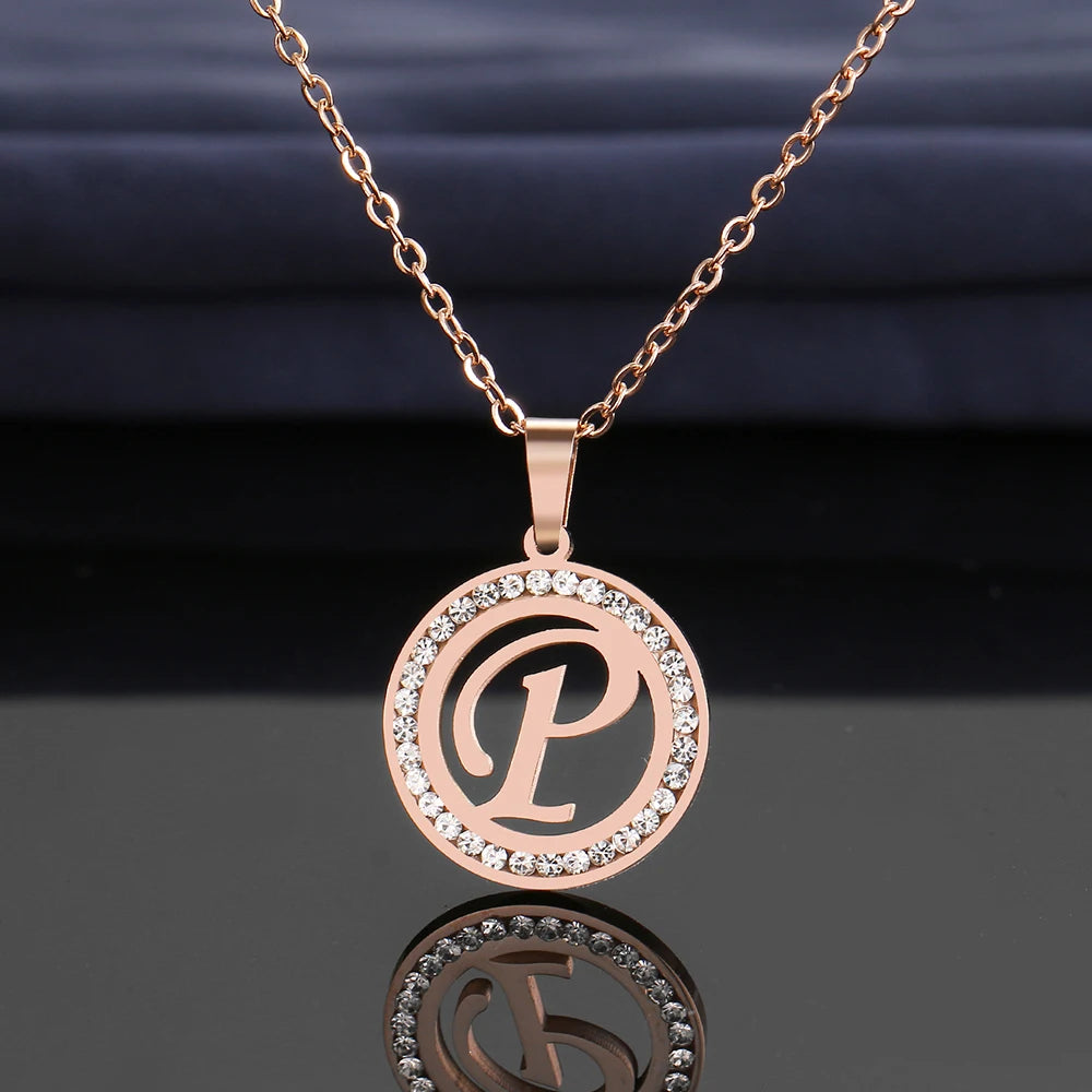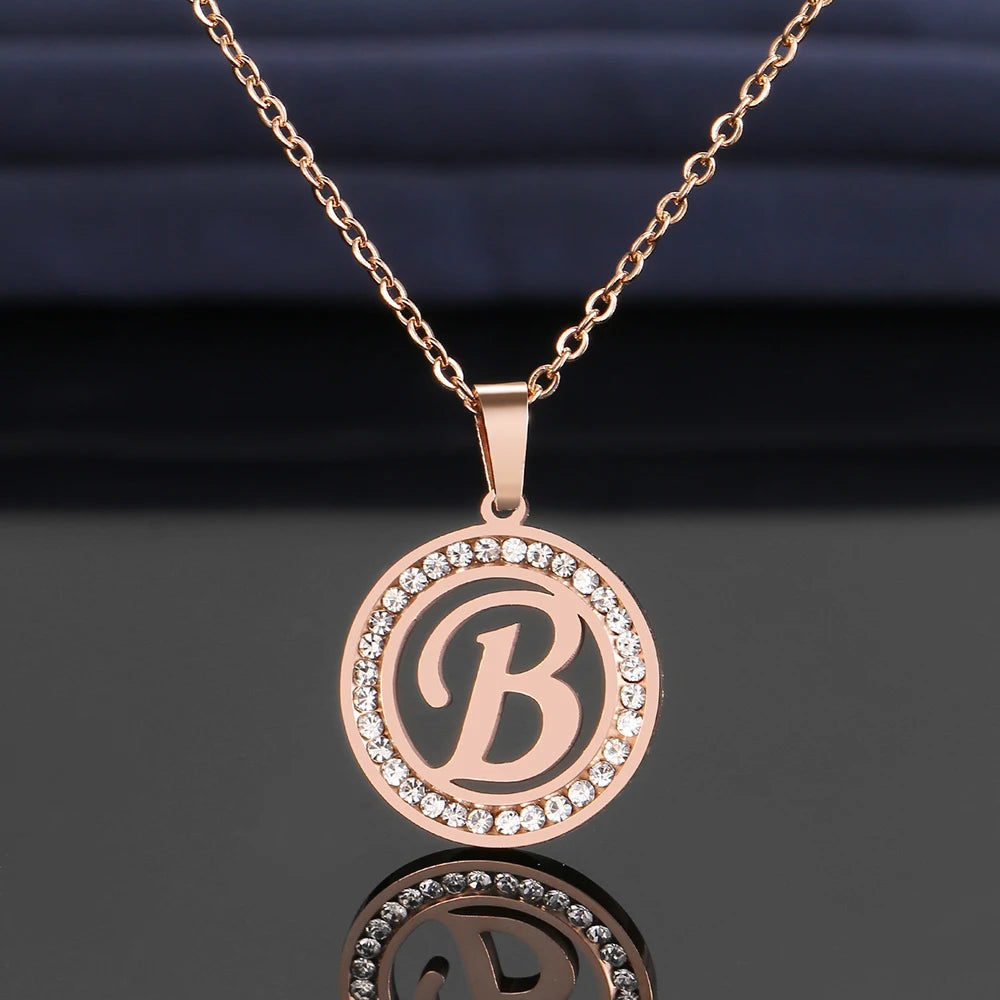 Perfect for gifting or treating yourself, our Rhinestone Circled Initials Necklace is a chic and versatile addition to any jewelry collection. With 26 alphabet options available, there's a necklace to suit every style and personality.