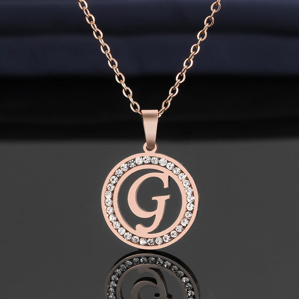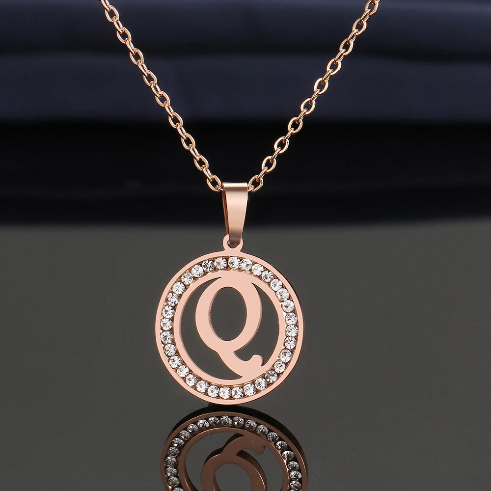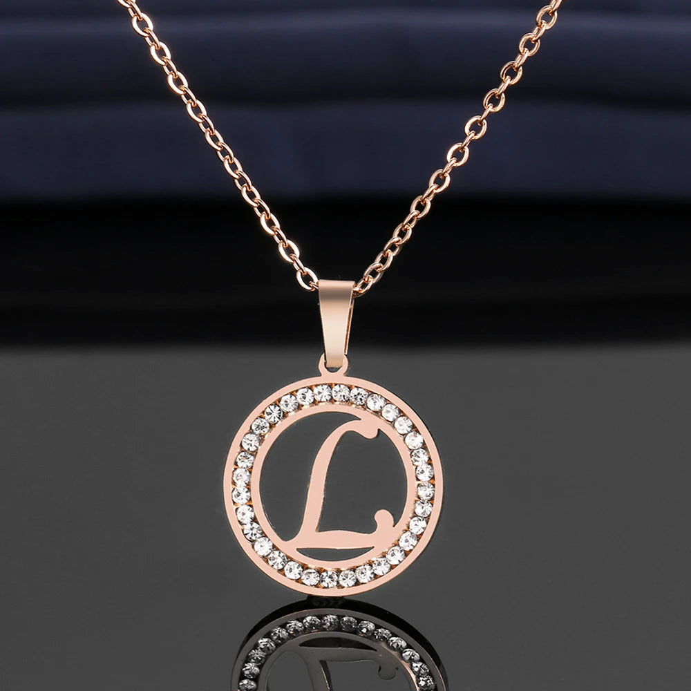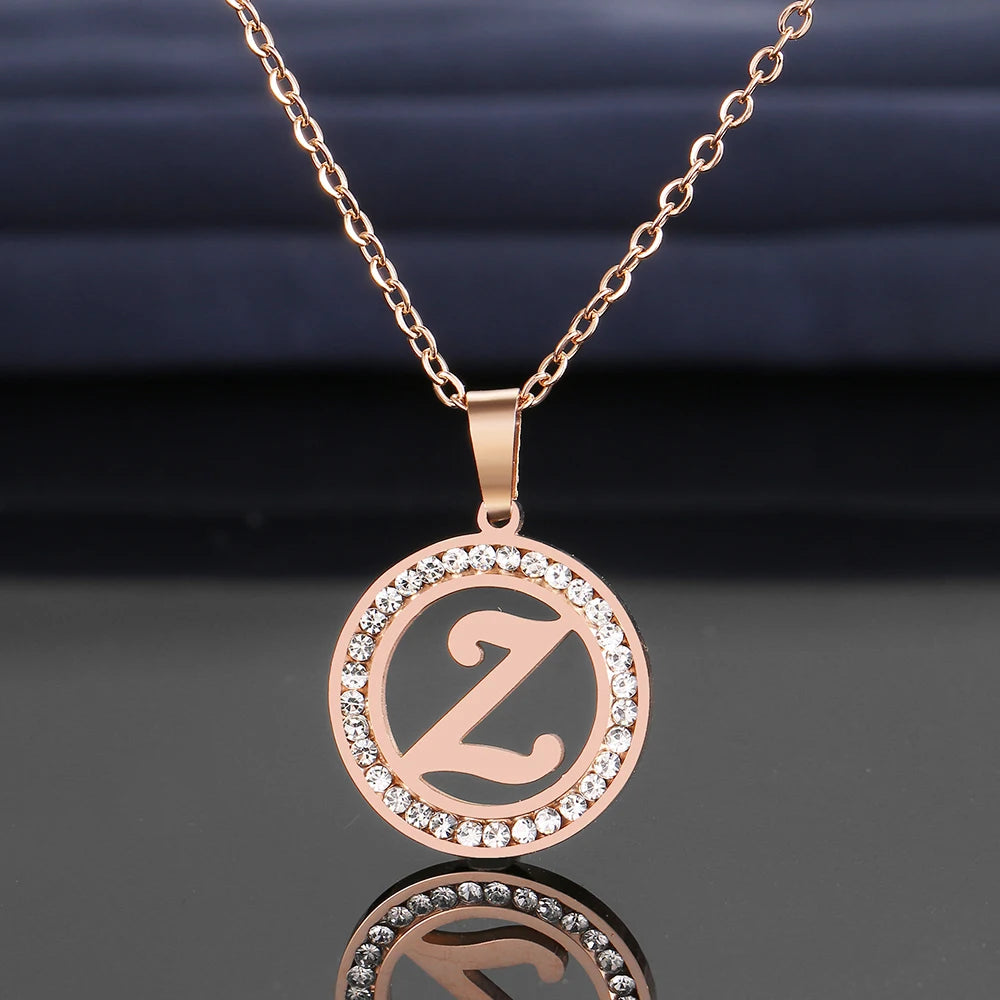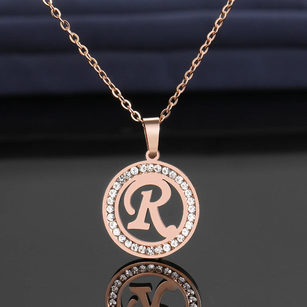 Perfect for gifting or treating yourself, our Rhinestone Circled Initials Necklace is a chic and versatile addition to any jewelry collection. With 26 alphabet options available, there's a necklace to suit every style and personality.