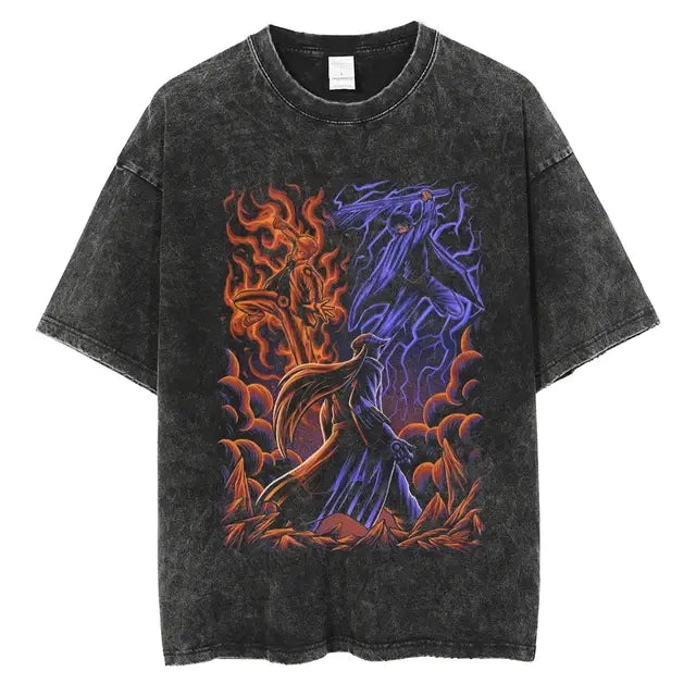 Make a bold statement with our Naruto print vintage t-shirt. Its distinctive design sets you apart, letting you flaunt your love for anime in a fashion-forward and eye-catching way.